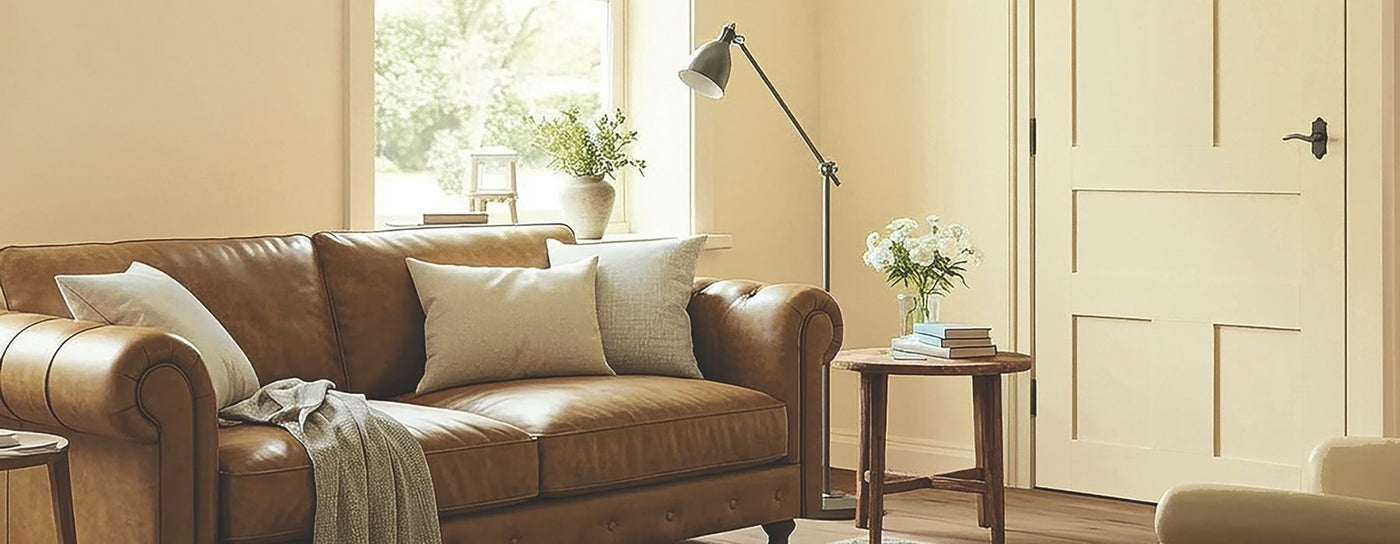 This kind, golden buttercream carries a gentle glow that can bring comfort and brighten your space without overwhelming it, making it an appealing back drop for the year ahead.